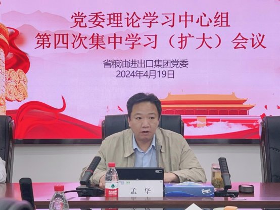 4月19日,省糧油進出口集團黨委理論學習中心組開展2024年第四次集體學習。集團黨委書記、董事長孟華主持會議并講話,集團黨委班子成員出席會議,各部門負責人列席會議。