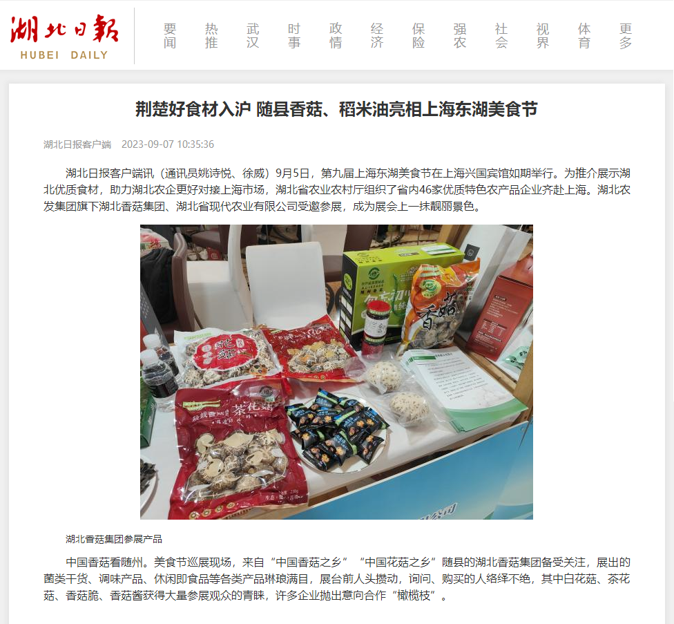 湖北日?qǐng)?bào):荊楚好食材入滬 隨縣香菇、稻米油亮相上海東湖美食節(jié)