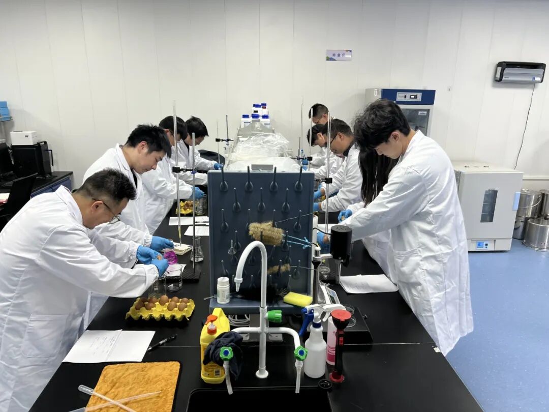 米來(lái)生物科技研發(fā)人員組成5個(gè)小組,圍繞“蛋黃收集”與“溶液標(biāo)定”等環(huán)節(jié)開展技能競(jìng)賽。活動(dòng)從蛋黃蛋清分離與收集、精準(zhǔn)標(biāo)定未知濃度氫氧化鈉溶液等方面,考驗(yàn)參賽選手的業(yè)務(wù)實(shí)操、化學(xué)實(shí)驗(yàn)基本功與數(shù)據(jù)處理能力。競(jìng)賽現(xiàn)場(chǎng),選手們精準(zhǔn)、高效完成各項(xiàng)任務(wù),展現(xiàn)出高超技能水平和扎實(shí)專業(yè)功底。