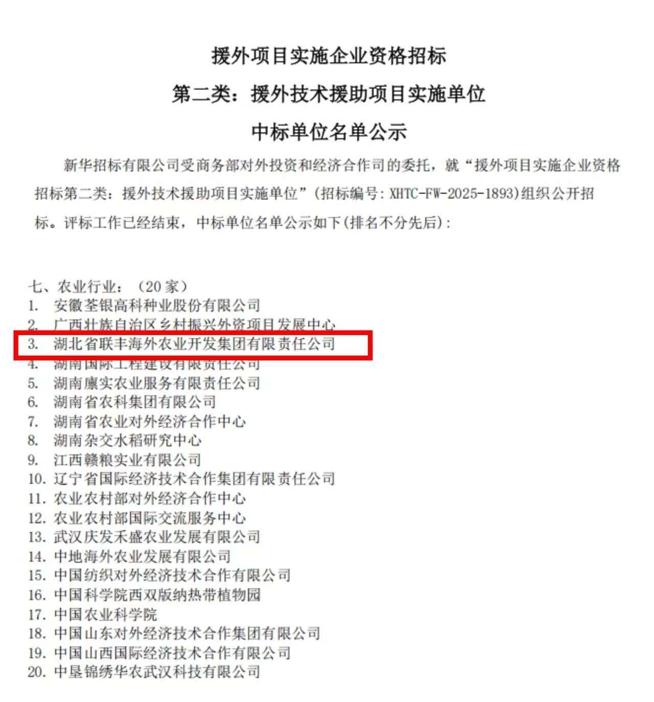近日,商務部援外項目實施企業資格招標(第二類:援外技術援助項目實施單位)結果公示。湖北農發集團旗下省糧油進出口集團聯豐海外憑借卓越的項目履約能力、扎實的專業技術實力以及良好的行業口碑,再次獲得援外項目實施企業資格。這一國家級資質的再次授予,既是對聯豐海外多年來在援外領域工作成效的權威認證,也為企業深度賦能國際合作、服務“一帶一路”建設注入強勁動力。